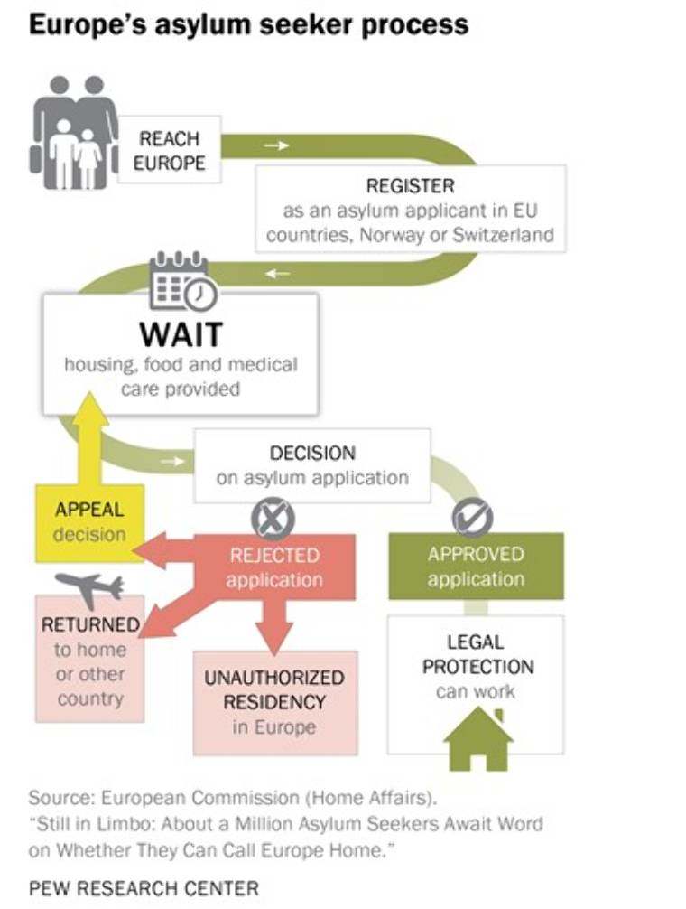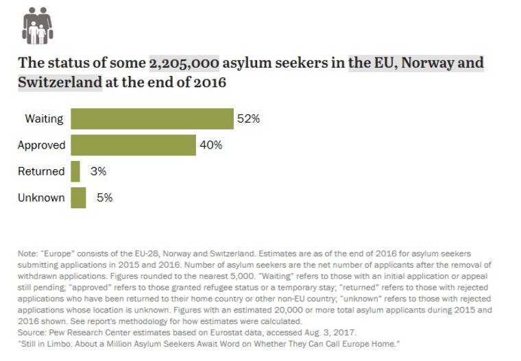 Ugyanakkor a 2015 és 2016 között beadott menedékkérelem közül körülbelül 885 000 beadvány kitöltője számára engedélyezték a hatóságok a legalább ideiglenes európai tartózkodást.