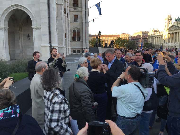 Miközben Gyurcsány Ferenc elmondta újabb nagyszerű és tanulságos meséjét, a DK-rajongók előlánccal vették körbe az Országházat. Még szerencse, hogy 2010 után felújították, és ezt ilyen kellemes környezetben tehették.