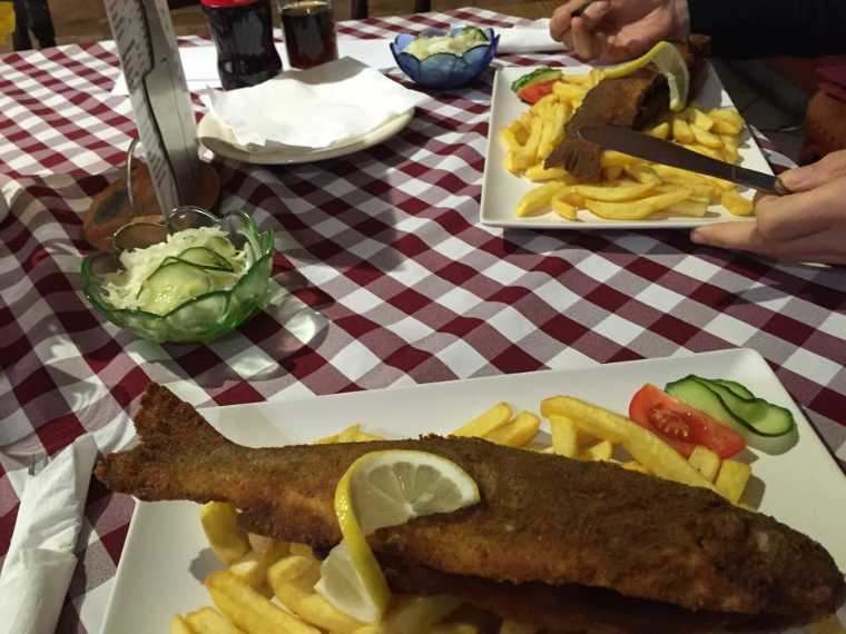Az árak viszont nem szöknek az égbe: egy egész pisztráng, sült krumplival, csalamádéval 1990 pénz. A Nordsee-ben ennyiért még egy mosolyt se kapsz.