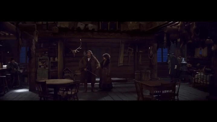 Hozzájuk csatlakozik, néhány hulla társaságában, az ex-katona Marquis Warren (Samuel L. Jackson) személyében, aki végigdicsekszi a filmet azzal, hogy levelet kapott Abraham Lincolntól a katonaságban tett szolgálataiért. Ami nettó négerezés lefolyik közben, attól szeretnénk ezúton is elhatárolódni. Röpke 50 perc lejártával a kis csapat - aki közben további egy személlyel bővül - megérkezik egy házikóba, ahova egy-két puskalövéssel be is köszönnek, és viszonylag gyorsan átszabják a hangulatot a kandallóban ropogó tűz körül.